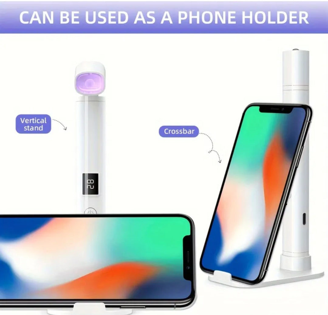 Telescopic light head, comes with stand that can double as a phone stand